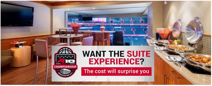 Purchase the suite experience for the Men's Basketball Championship so you and your friends (18 total) can have the amentites and private area you want. The suite is for the entire session, which includes two games for every session except session 7 (Championship). The suite is $1,000 per session for sessions 1, 2, 3 and 4 and when broken down per person, cost just $55 each. For sessions 5, 6 and 7, the cost is only $98 per person. The suite must be purchased as a unit so gather your friends and family and we will see you in Capital One Arena.