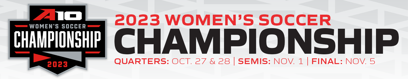QUARTERFINALS - Friday, October 27 On Campus of Higher Seed Match 1: No. 1 Saint Louis 2, No. 8 VCU 0 8:00 pm ET / 7:00 pm CT Watch Live Live Stats Recap Box Score Photo Gallery Highlights Match 2: No. 5 Duquesne 2, No. 4 Massachusetts 1 2:00 pm ET Watch Live Live Stats Recap Box Score Photo Gallery Highlights Match 3: No. 2 La Salle 2, No. 7 Rhode Island 0 7:00 pm ET Watch Live Live Stats Recap Box Score Photo Gallery Match 4: No. 3 Dayton 1, No. 6 Saint Joseph's 0 7:00 pm ET Watch Live Live Stats Recap Box Score Photo Gallery Highlights SEMIFINALS - Wednesday, November 1 On Campus of Higher Seed (pairings will be re-seeded following the Quarterfinal Round) Match 5: No.1 Saint Louis 5, No. 5 Duquesne 0 8:00 pm ET / 7:00 pm CT Watch Live Live Stats Recap Box Score Photo Gallery Highlights Match 6: No. 2 La Salle 1, No. 3 Dayton 0 (OT) 7:00 pm ET Watch Live Live Stats Recap Box Score Photo Gallery Highlights CHAMPIONSHIP - Sunday, November 5 On Campus of Higher Seed Match 7: No.1 Saint Louis 3, No. 2 La Salle 0 Watch Live Live Stats Recap Box Score Photo Gallery Highlights Quick Links 2023 #A10WSOC Bracket 2023 #A10WSOC Championship Rewind Buy A-10 Championship Gear 2022 #A10WSOC Championship Home Follow the A-10 on Twitter Follow the A-10 on Instagram Previous Champions Year Regular Season Champion A-10 Champion 2022 Saint Louis Saint Louis 2021 VCU Saint Louis 2020-21 Saint Louis Saint Louis 2019 Saint Louis Saint Louis 2018 Saint Louis Saint Louis 2017 La Salle La Salle 2016 Saint Joseph's Dayton 2015 George Washington Duquesne 2014 La Salle Dayton 2013 Dayton La Salle 2012 La Salle La Salle 2011 La Salle Dayton 2010 Charlotte/Dayton Dayton