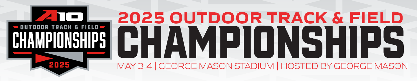 Saturday, May 3 Live Results Starts Sheets Final Results Recap Photos Sunday, May 4 Live Results Starts Sheets Final Results Women's Recap | Men's Recap Photos Quick Links Schedule of Events Ticket Information Live Results George Mason Stadium // Fairfax, Va. Men's Outdoor Track & Field Record Book Women's Outdoor Track & Field Record Book 2024 #A10OTF Championship Home 2024 #A10OTF Championship Rewind Buy A-10 Championship Gear Follow the A-10 on Twitter Follow the A-10 on Instagram Previous Champions Year Men's Champion Women's Champion 2025 George Mason Massachusetts 2024 Rhode Island VCU 2023 Rhode Island George Mason 2022 Rhode Island Massachusetts 2021 Rhode Island VCU 2020 Championship not conducted due to COVID-19 2019 George Mason George Mason 2018 Rhode Island VCU 2017 George Mason George Mason 2016 George Mason VCU 2015 George Mason George Mason 2014 Rhode Island George Mason 2013 Rhode Island Charlotte 2012 Charlotte Charlotte 2011 Rhode Island Charlotte 2010 Charlotte Temple